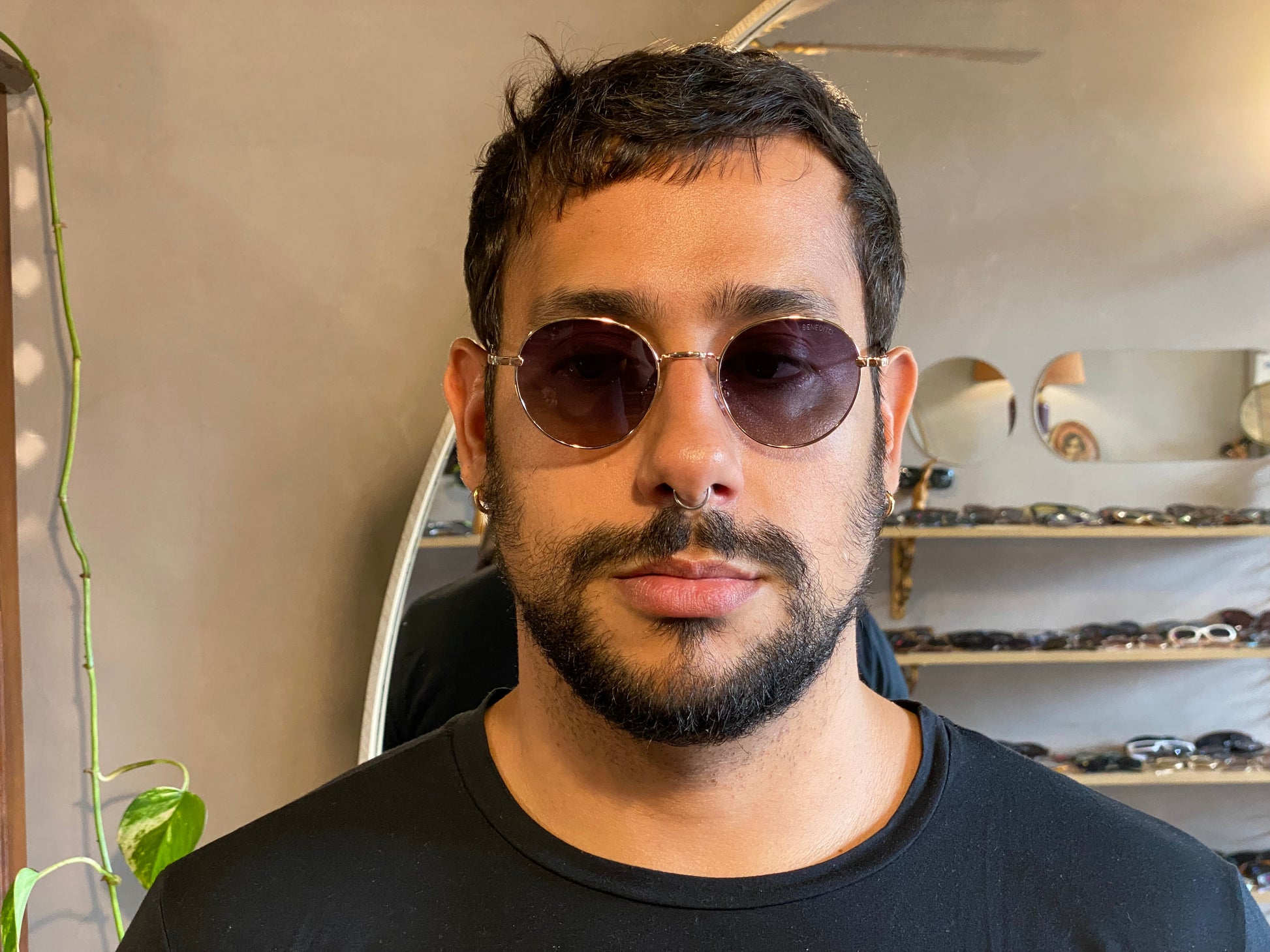 óculos em metal dourado